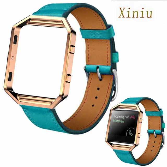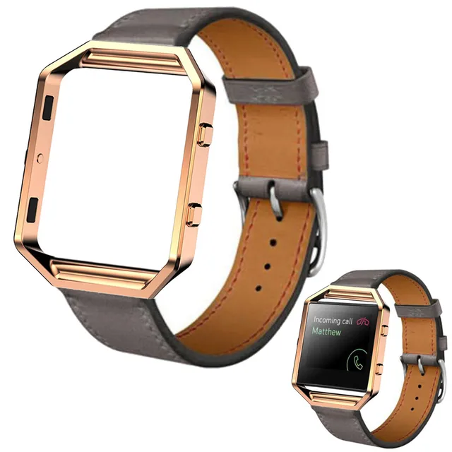 상품 내용 여성 남성 시계 밴드 뜨거운 판매 고급 가죽 시계 밴드 손목 스트랩 + 금속 프레임 핏 비트 블레이즈 스마트 시계 특징: