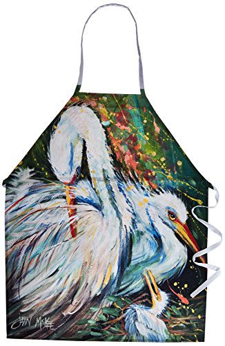 Caroline's Treasures JMK1289APRON White Egret in the Rain Apron, Large, Multicolor