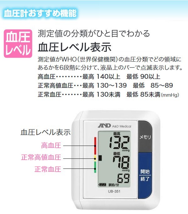 血圧レベル表示は、測定した値が、WHO(世界保健機関)の血圧分類で、