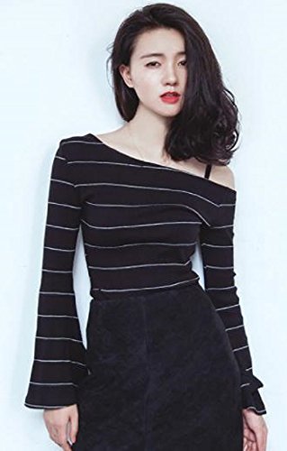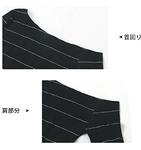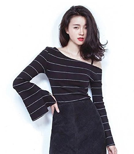 -. Title : (sleeping sheep) 斜め肩出し フレアスリーブ リブ ボーダー セクシー ストレッチ カットソー