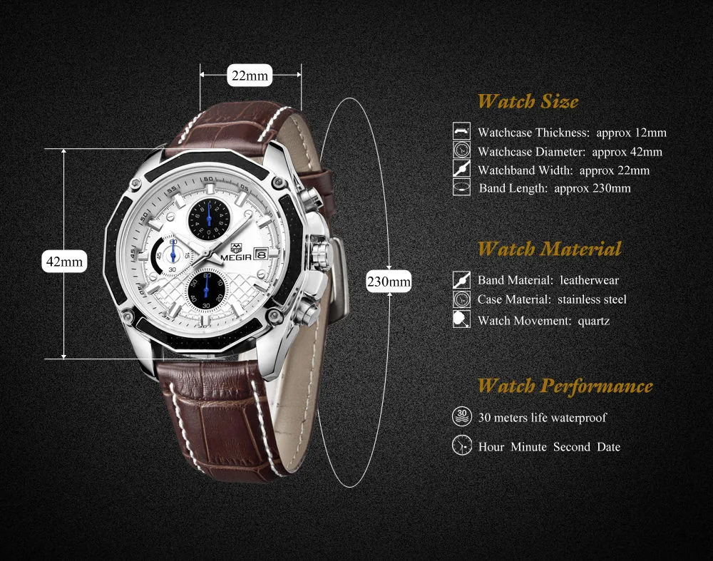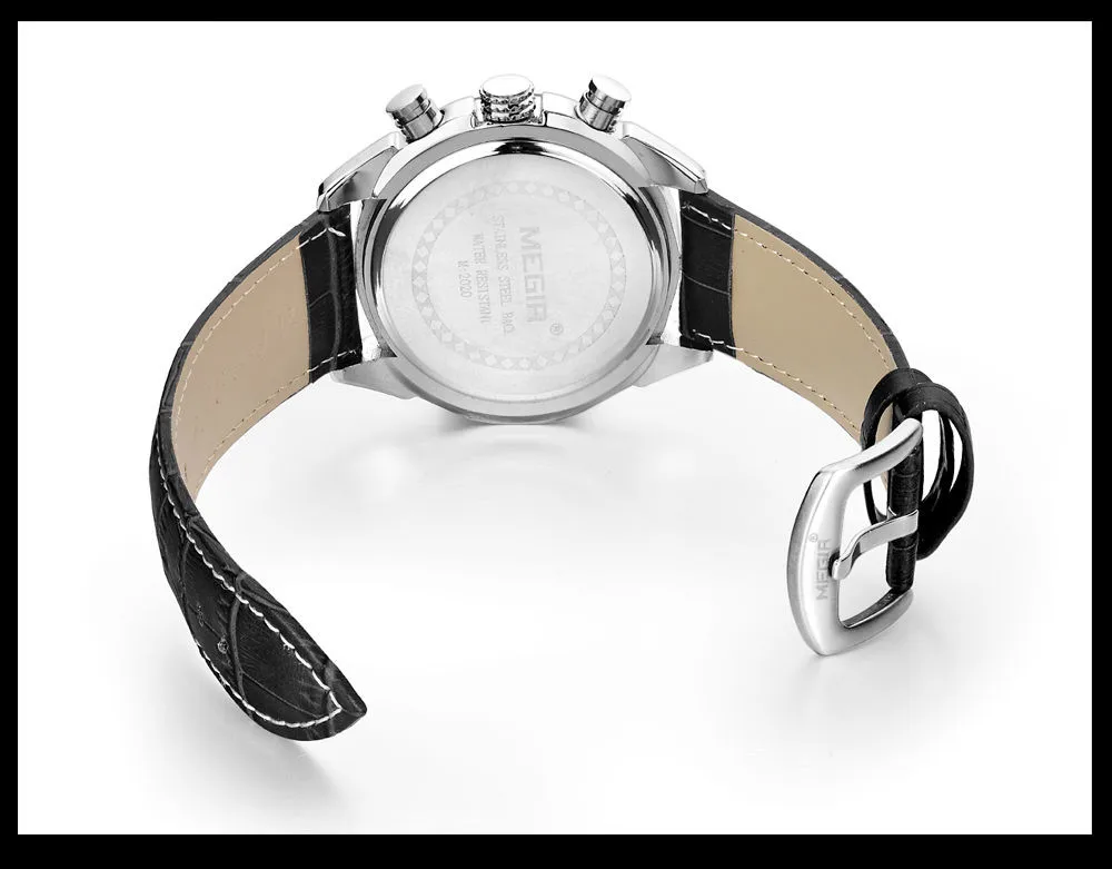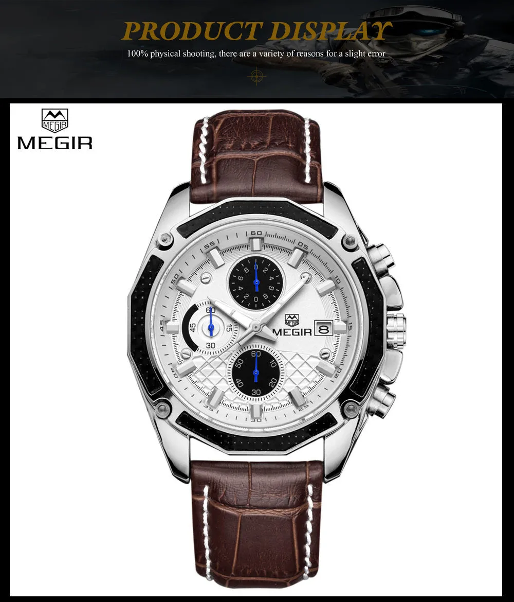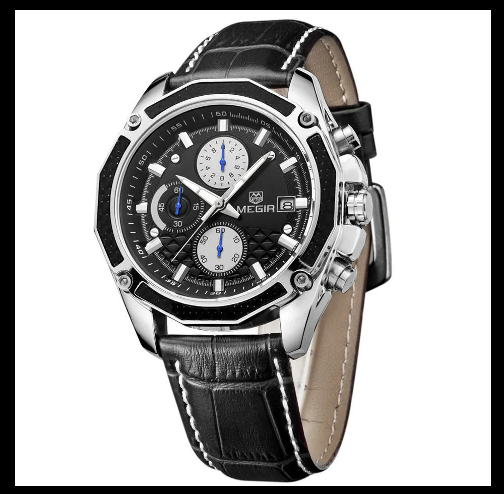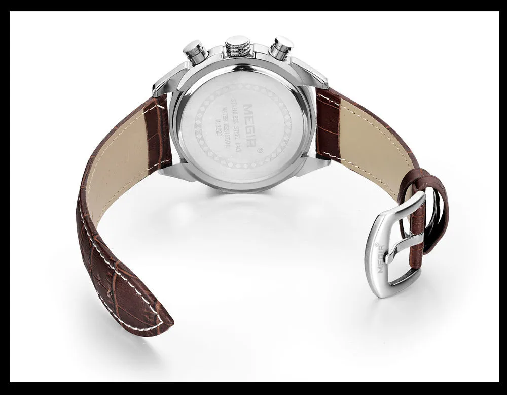 Genuine MEGIR quartz male watches Genuine Leather watches racing men Students game Run Chronograph Watch male glow hands