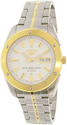 Who says casual and classy dont mesh Theres always a way to make it work Laid-back doesnt have to mean boring or drab and this Seiko watch is proof for those who doubt it Its the perfect in-between a duo of dapper and down-to-earth It features a 41MM stainless steel case that makes for a dapper appearance right off the bat and creates a subtle contrast against the watchs white dial thats perfectly pleasing to the eye The hands on the dial are gold which contributes to the masculine elegance of the piece The watchs sleek applied indexes contribute to its classy feel as well However the combination of its band and minimalistic design is what makes this timepiece a mix of sharp and nonchalant Although the details are undoubtedly classy in the refined shade of gold there isnt too much happening on the face of the watch The details are keen but few The band also plays a major role in keeping this timepiece grounded with its two-tone stainless-steel composition Though a fresh hybrid of casual and sleek this watch is hardy nonetheless It has a water resistance of up to 50 meters 165 feet 5 atm and its dial is protected by a hardlex crystal You dont have to worry about destroying this bad boy anytime soon The best part It uses japanese-automatic movement so youre guaranteed some serious accuracy and precision from this time-keeper So whether youre at watching a movie at home in the office working out at an upscale event or going out with the boys you can rest assured that this watch will last you as long as you need it to Its durable charmingly simple and polished all in oneFeature