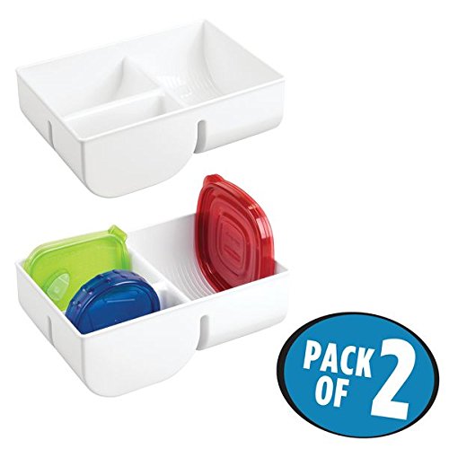 mDesign Food Storage Lid Organizer for Kitchen Cabinet, Pantry - Pack of 2, White