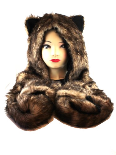 -. Title : Dark Brown and Black Furry Beanie with Pockets - Faux Animal Fur Hat [Toy]