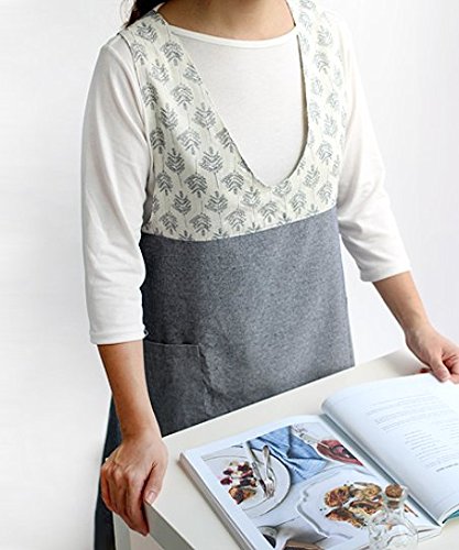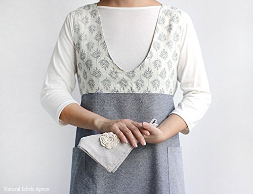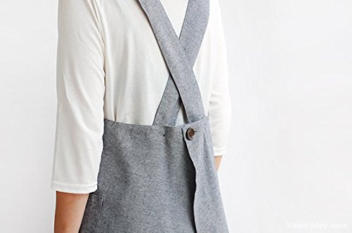 cozymomdeco Chef Works Handmade Apron Japanese Style X Button Shape Denim Smock Natural Linen Apron-2 colors (White)