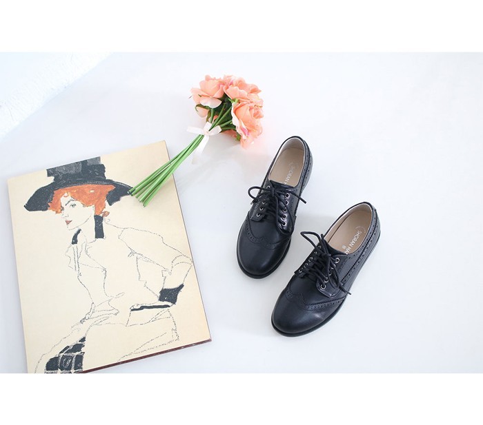 商品名:フラットシューズ レディース ウイングチップ レースアップ 2017 秋 冬 ファッション 靴 婦人靴