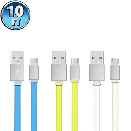 -. Title : Android Charger, Myckuu 3 Pack 10ft 3M Durable flat noodle Tangle-Free Micro USB 2.0 Charge Cable Sync Charging Cord for Android, Samsung, HTC, Sony, Nokia and More (blue+yellow+white)