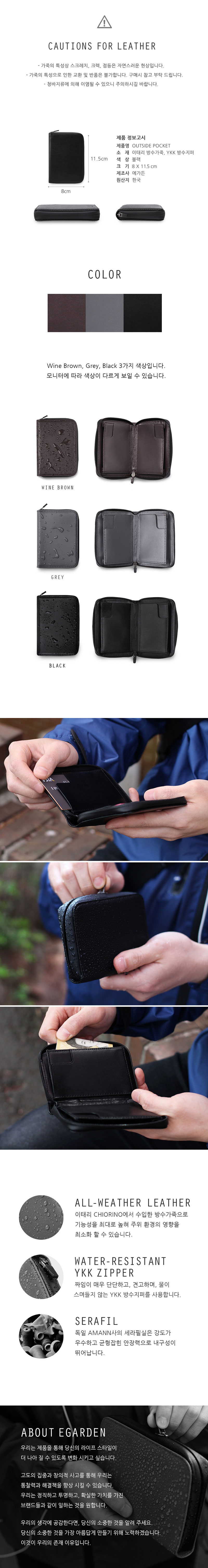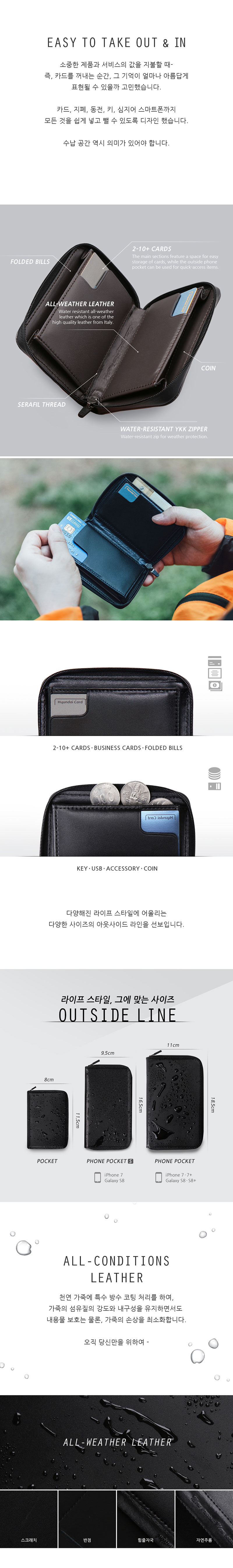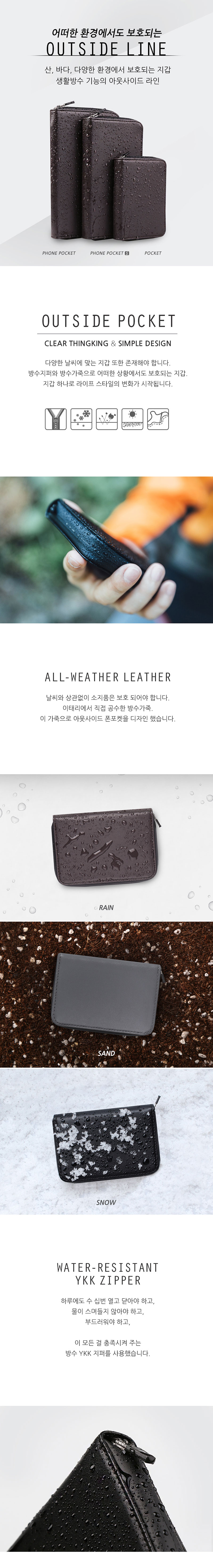 방수지퍼와 방수가죽으로 어떠한 상황에서도 보호되는 지갑.