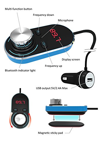 The Oittm Bluetooth FM transmitter offers superior sound quality and an advanced transmitting chipset. The bright LCD display makes tuning and controlling your audio easy. Equipped with ondeck music controls, a universal USB charging port, and integrated microphone, this transmitter is sure to make your on-the-go lifestyle simpler, safer, and more efficient!