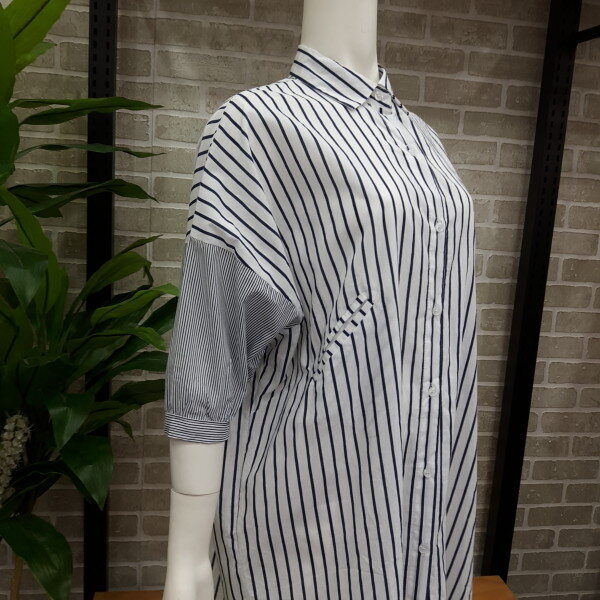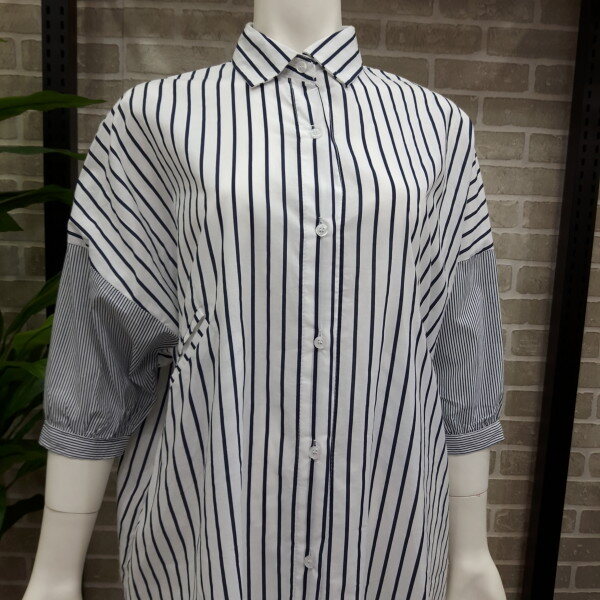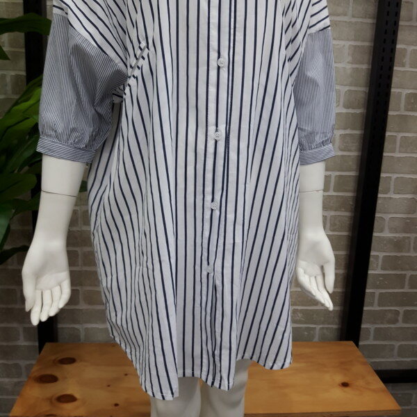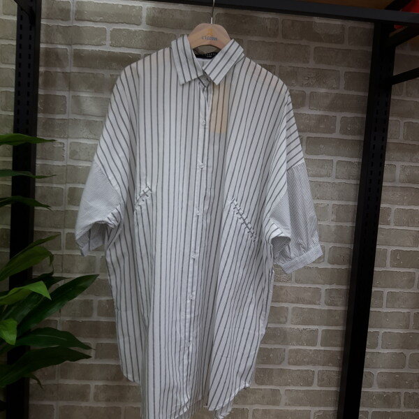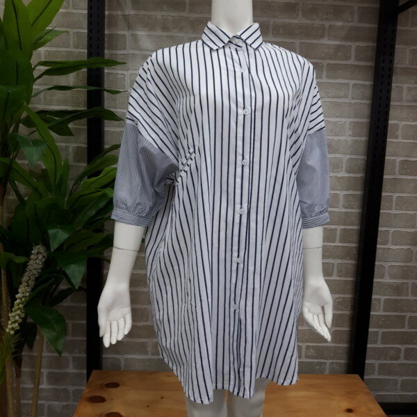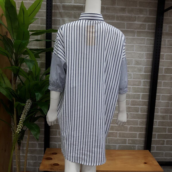 박스형의 롱남방입니다칠부소매로 스트라이프 무늬가 슬림하게 보이며 레깅나나 스키니랑 같이 코디하시면 좋은 아이템입니다