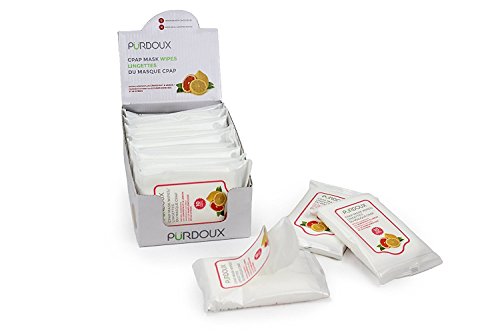 PÜRDOUX CPAP Mask Wipes with Grapefruit Lemon scent (Box of total 120 wet wipes in 12 resealable sachets, 10 wipes per sachet)