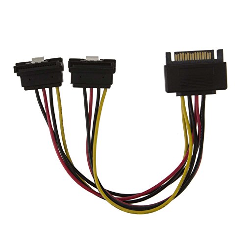 Splitter sata cable powers two Serial ATA HDD, SSD, optical drives, DVD burners, and PCI cards to a single connection on a computer power supply