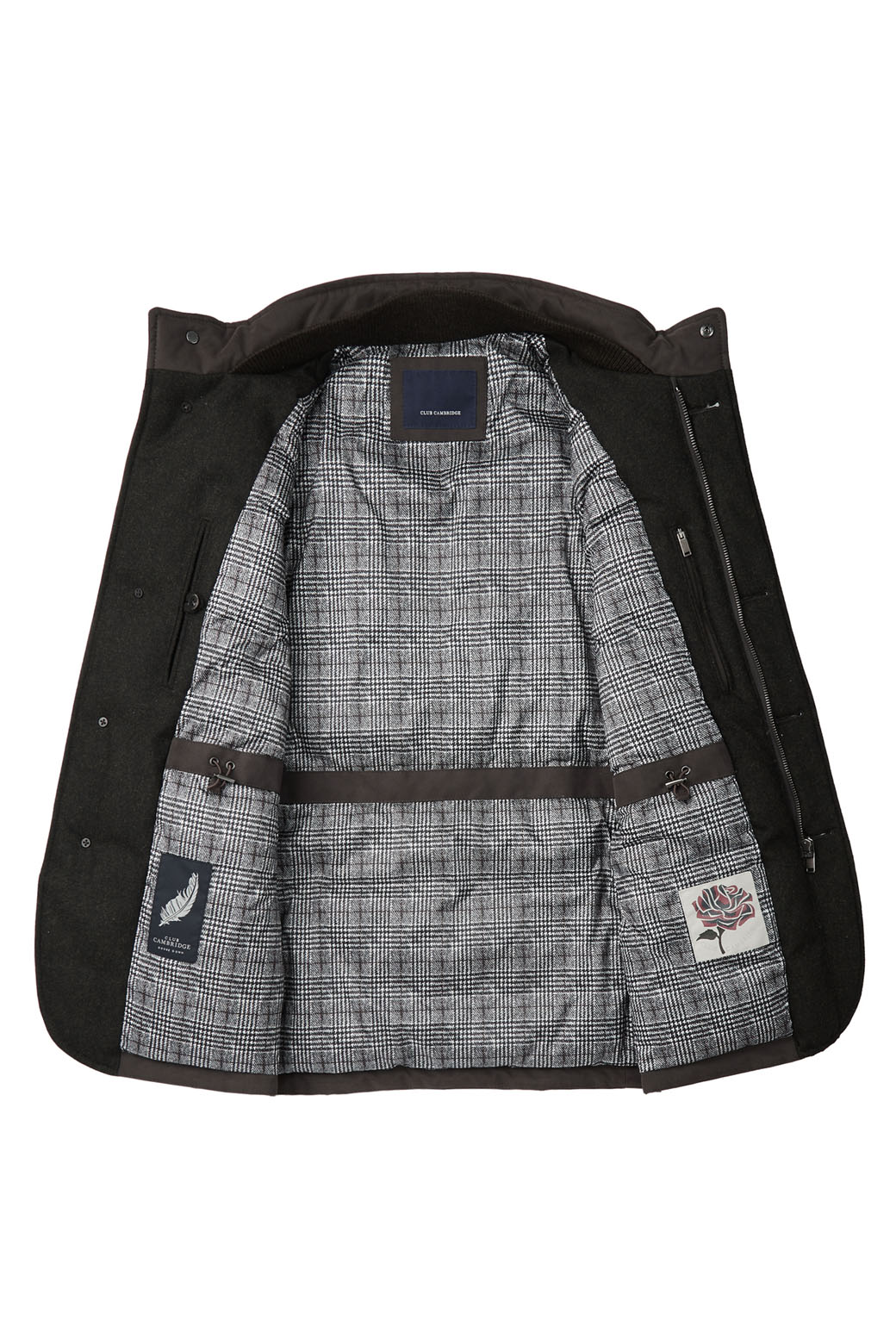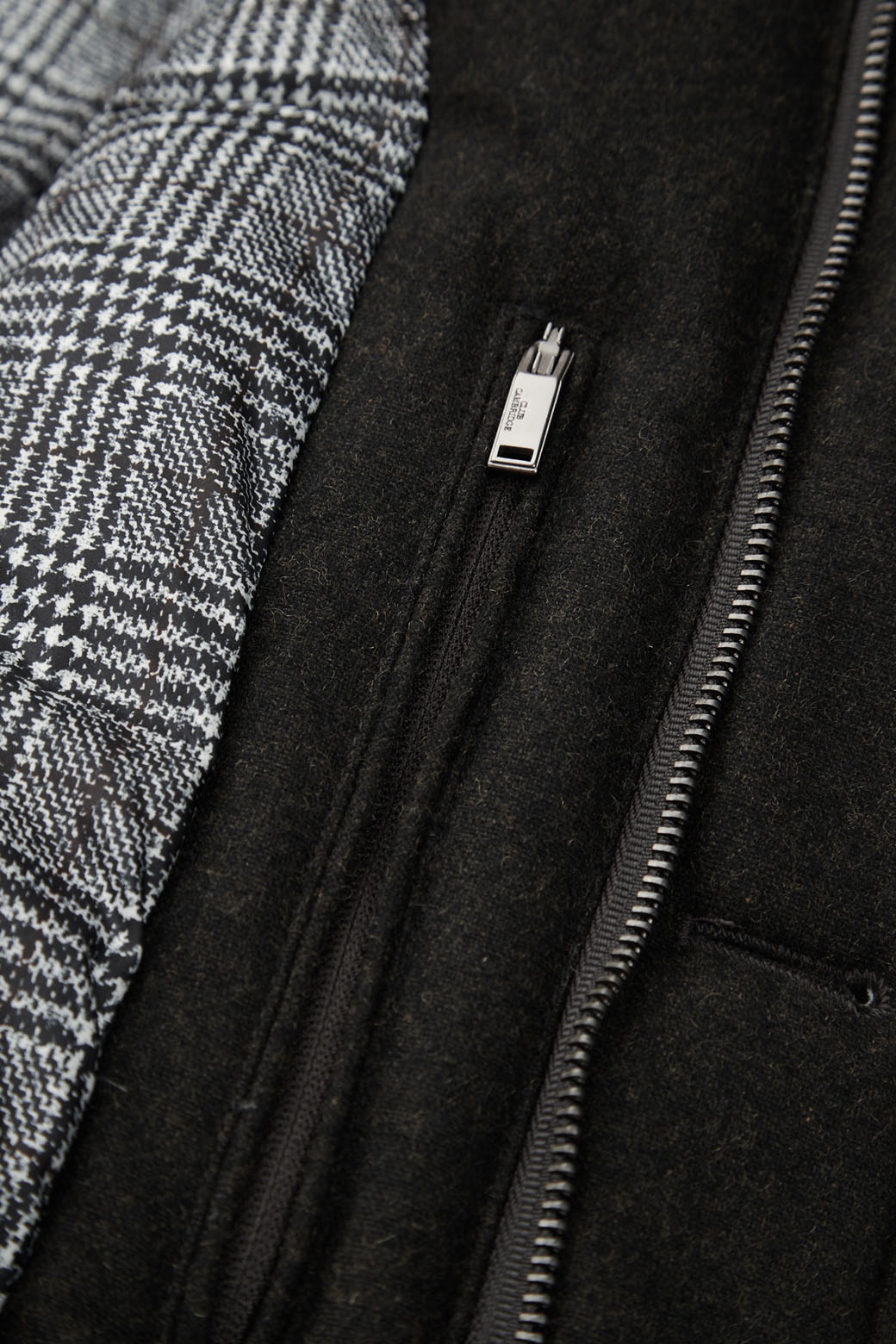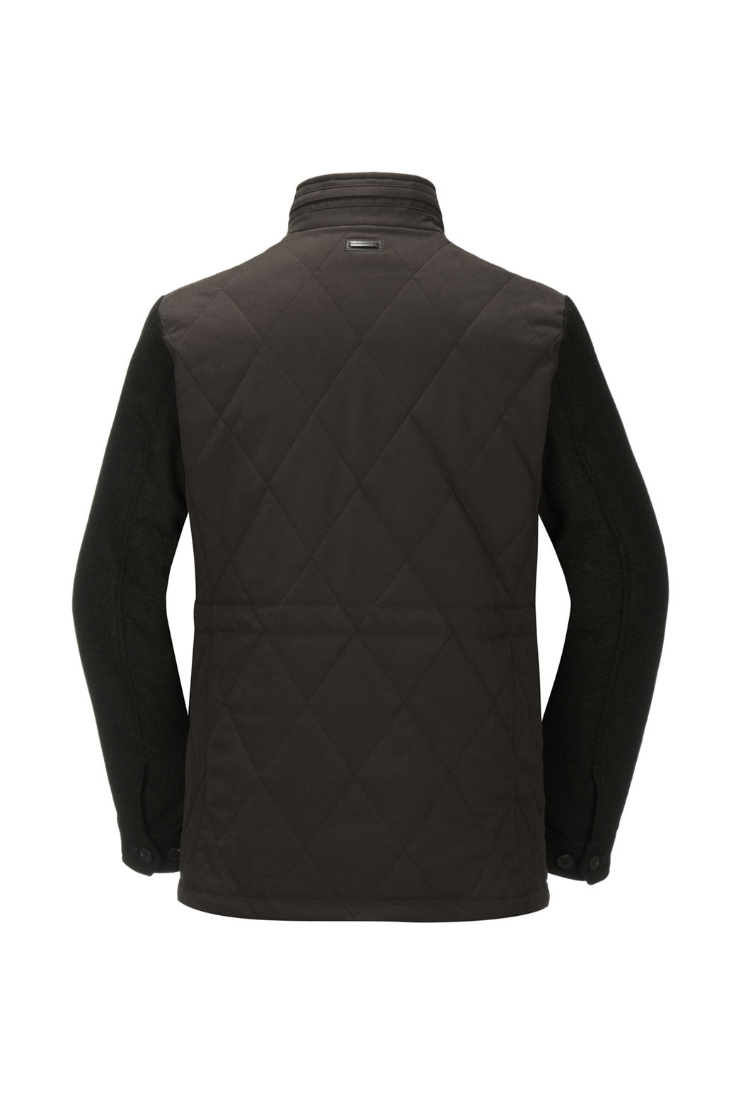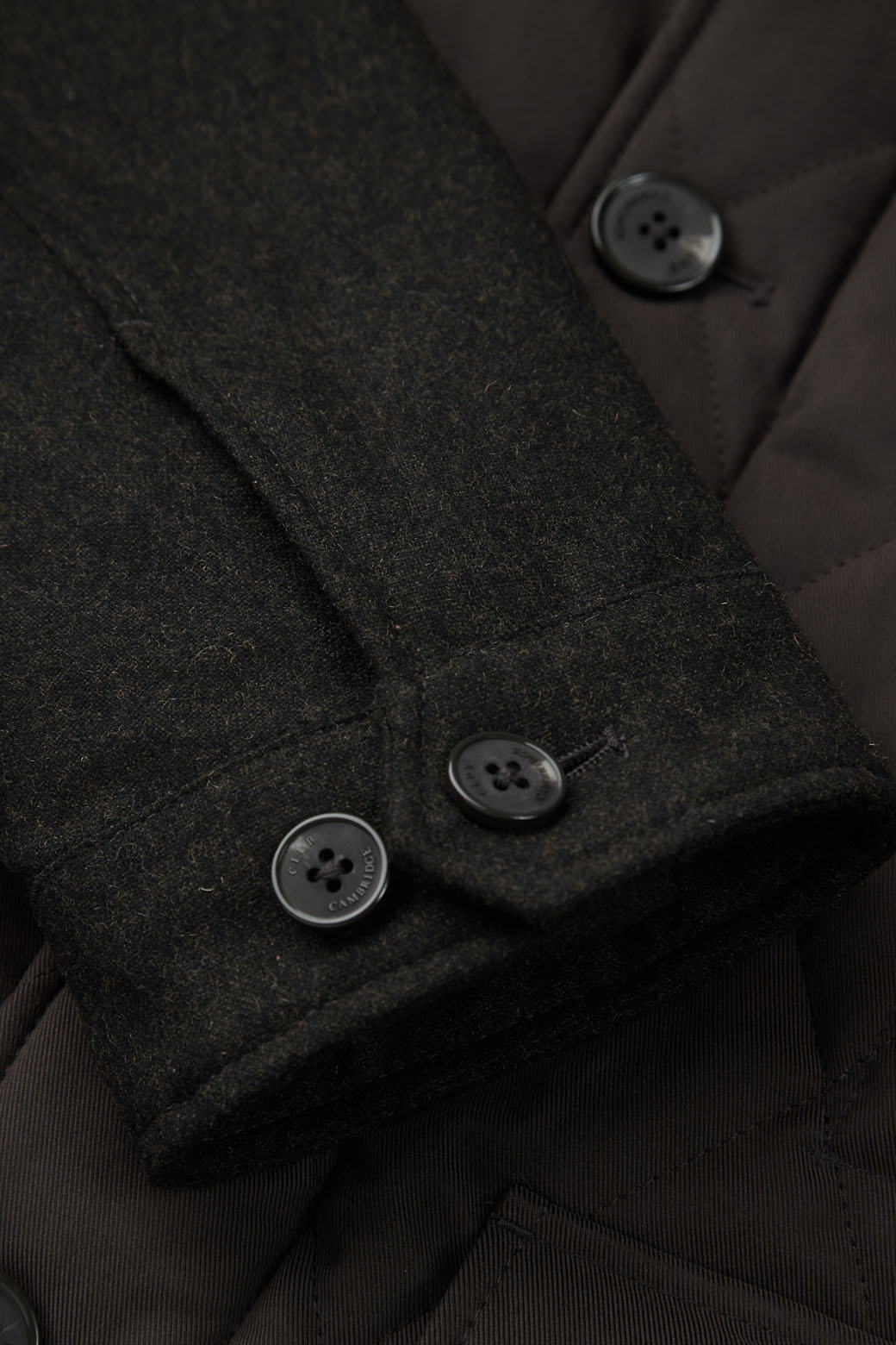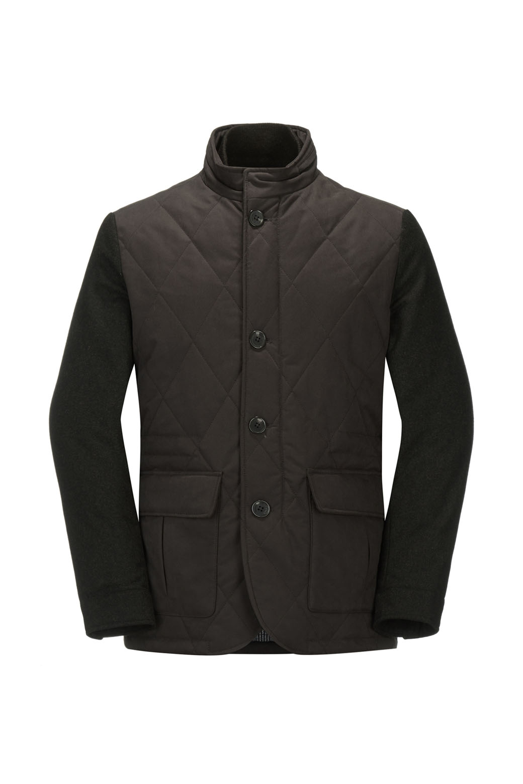 - 다이아몬드 퀼팅 라인의 몸판과 소매에는 울혼방 소재를 배색한