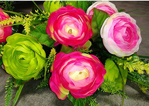 Admired By Nature 22 Stems Artificial Ranunculus & Fillers Mixed Flowers Bush for Home office, Restaurant, Wedding Decoration, Velvet/Pink/Kiwi
