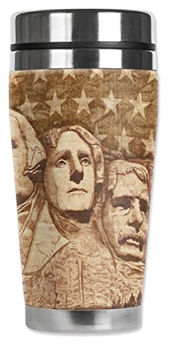 Mugzie 1245-MAX "Mount Rushmore" Stainless Steel Travel Mug with Insulated Wetsuit Cover, 20 oz, Black