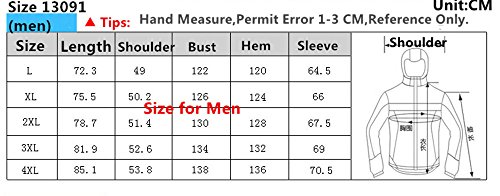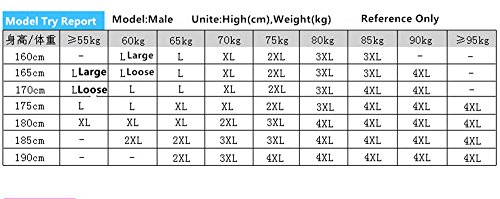Size:This is a Asian Size,pls reference the 2nd-3rd picture to choose your size.: L(5.58'/132bl)(170cm/60kg): Length(cm/inch):72.3/28.46',Shoulder(cm/inch): 49/19.29',Bust(cm/inch):122/48.03',sleeve(cm/inch):64.5/25.39' XL(5.74'/145bl)(175cm/65kg): Length(cm/inch):75.5/29.72',Shoulder(cm/inch): 50.2/19.76',Bust(cm/inch):126/49.61',sleeve(cm/inch):66/25.98' 2XL(5.91'/154bl)(180cm/70kg): Length(cm/inch):78.7/30.98',Shoulder(cm/inch): 51.4/20.24',Bust(cm/inch):130/51.18',sleeve(cm/inch):67.5/26.57'