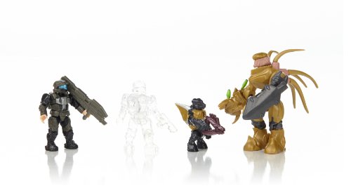 -. Feature : Combat unit inspired by Halo 3: ODST / Buildable display stand / UNSC Micro-Action Figs: ODST, active camo ODST / Covenant Micro-Action Figs: Grunt in gold, Hunter in gold / Weapons and Accessories: Spartan laser, M6C SOCOM, Needler, Hunter shield, Backpack x2
