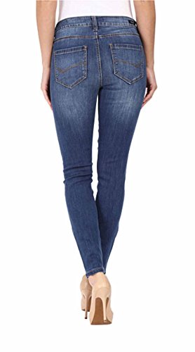 Mid-rise 5 pocket styling, zip-fly, logo button closure