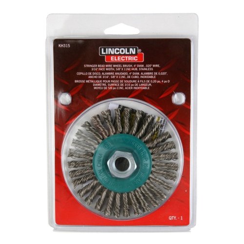Lincoln Electric KH315 Stainless Steel Twisted Stringer Bead Brush, 20000 rpm, 4" Diameter x 3/16" Face Width, 5/8" x 11 UNC Arbor (Pack of 1)