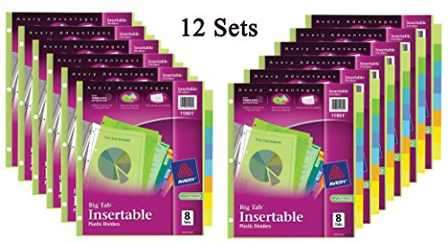 Avery Big Tab Insertable Plastic Dividers, 8-Tabs, 12 Sets
