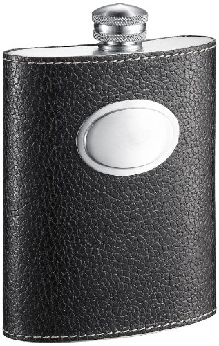 - Genuine Black Leather is wrapped on brushed finish pewter flask