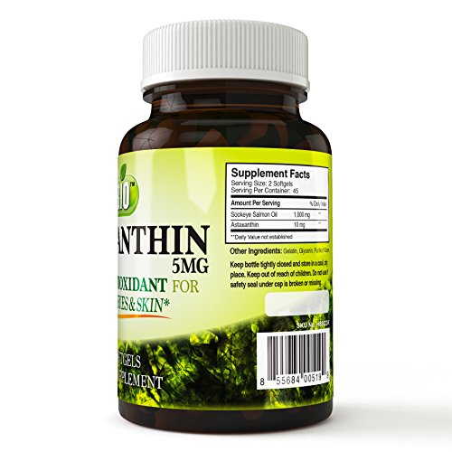 -. Feature : ALL NATURAL: We use only 100% Natural Astaxanthin sourced from Haematococcus pluvialis Micoalgae. Non-GMO and formulated without Fillers, Synthetic Ingredients or Gluten.* / EYES, SKIN, BRAIN, AND HEART: It's been shown that Astaxanthin is effective at helping protect agaignst cell destroying free radicals in the body by reducing oxidation while improving the overall function of the cell. To put it simply, it means you work better-healthier cardiovascular system, improved memory, boosted energy, stronger eyes, and a fortified immune system to name just a few life enhancing effects that have been associated with this powerful antioxidant. / REJUVENATE & RECOVER: Oxidation through free radical exposure happens to us all as we age, and it slows our recovery time and saps our energy and strength. By using this remarkable supplement, you're not only giving yourself much needed relief, but taking back a stronger, more vibrant you in the process. Astaxanthin helps to optimize cellular function across all bodily systems. / Astaxanthin is 10 to 100 times more powerful than other carotenoids like beta-carotene and lycopene. / This makes it one of the most potent and powerfully effective antioxidants that one can ingest. A naturally occurring carotenoid pigment and a powerful biological antioxidant, astaxanthin exhibits strong free radical scavenging activity and may help protect against oxidative damage of LDL-cholesterol, cell membranes, cells, and tissues.