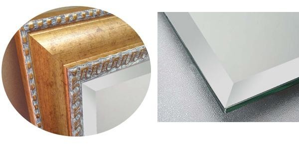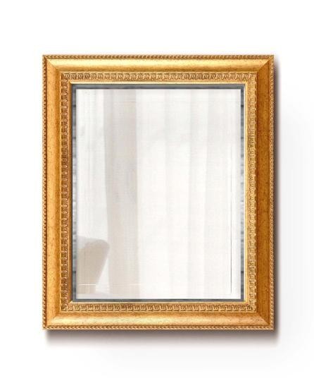 | 豪華な金のフレームに面取り加工をしたデザイン性のあるミラー。 |