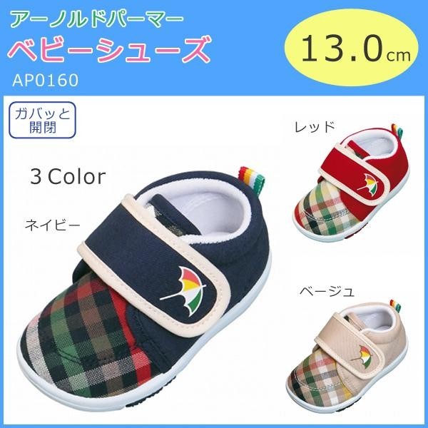 カラフルで可愛らしい、アーノルドパーマーのベビーシューズです。脱ぎ履きがラクな、ガバッと開閉タイプ。ご自宅用としてはもちろん、贈り物としても喜ばれます。 製造国:中国 素材・材質:アッパー:コットンソール:PVC 商品サイズ:13.0cm 重量:片足:約65g ※サプライヤー直送品  ご注文後3~4営業日後の出荷となります【商品名】アーノルドパーマー ベビーシューズ 13.0cm AP0160 ネイビー