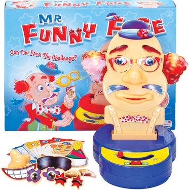 Studio : Tobar Publisher : Tobar Binding : Toy Product Description Make up the funny faces on your card before your time runs out with Mr Funny Face Board Game! The face pieces fly off if you are too slow! It is an action puzzle game with a timer. Players must follow the card figure shown and put the corresponding pieces on the face. If the player cannot finish the face before the timer runs out, it will move forward and all the pieces will fly off!!