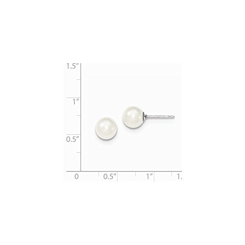 Solid 925 Sterling Silver 7-8mm White FW Cultured Round Simulated Pearl Stud Earrings