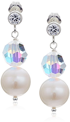 Crystals by Swarovski and Cultured White Freshwater Pearl Snowman Clip-On Earrings