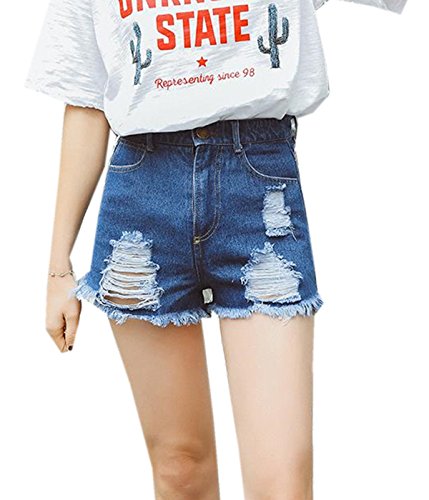 -. Title : KAJIKAJI レディース ショート パンツ デニム レディース ストレッチ 短パン カジュアルパンツ ショートデニム/パンツ/ボトム/デニム /レディース 細身 足長 美脚 カジュアル 綿パン 夏 超短パン デニム ハイウエスト ダメージ加工
