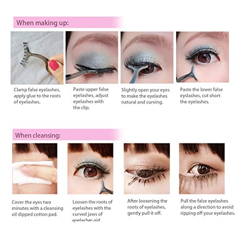 Size: 10.5 x 1.5 cm/ 4.13 x 0.59 inch, they are good helper for you to wear on or take off the false eyelashes, adjust or repair your false eyelashes Wear on: clip the false eyelashes along the front end of the tweezers radian, then daub the eyelash glue on the roots of false eyelashes and paste into the original eyelash root Removal: put index finger and thumb on middle wide part of the clamp, clip the false eyelashes end, it will pry primary eyelashes gently, then detach slowly
