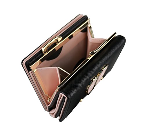 The Orient Bee Women's Mini Shimmery Faux Leather Wallet Kiss Lock Closure