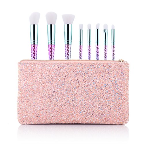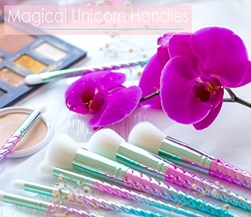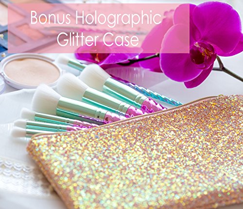 Unicorn Makeup Brushes with Mermaid Glitter Case, Brush Set Includes Powder, Foundation, Contour, Concealer, Shadow, Blender, Highlighter,...