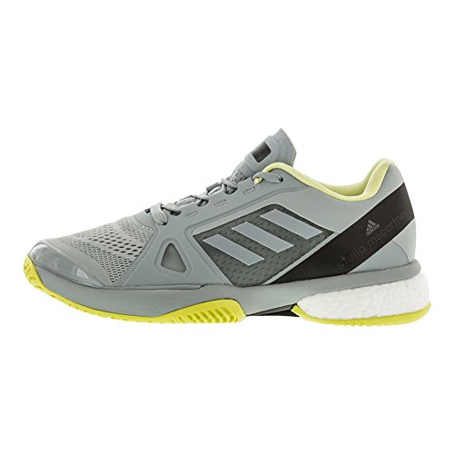Binding : Apparel Product Description Adidas and Stella McCartney feature the Barricade Boost shoe with a modern and dynamic design. This model unites support and flexibility in order to provide a high level of support when you are moving around the court. This model offers woven mesh on the vamp and the upper part of the shoe is in mesh and TPU in order to provide the perfect compromise between flexibility and support. This model is made for defensive players, such as Caroline Wozniacki. Get ready to be suprised by the return of energy you will feel thanks to the intermediate BoostTM sole. The level of comfort is exceptional because of the shoe's tongue and the redesigned sole that effectively adapts to the shape of your feet. This model is flexible, dynamic and robust; sticking to the classic Barricade characteristics. Adidas features a feminine and dynamic model in order to allow you to perform well and look great on court ! - Boost technology for infinite energy flow : more speed and light weight - The upper part of the shoe in mesh is seamless : comfortable and for an exceptional fit - TPU layer welded into the upper part of the shoe for better longevity around the areas that are most likely to experience wear and tear - EVA insole with expanded TPU capsules in the heel - Ergonomic heel reinforcement - ADIWEAR 6 out-sole for outstanding longevity 0