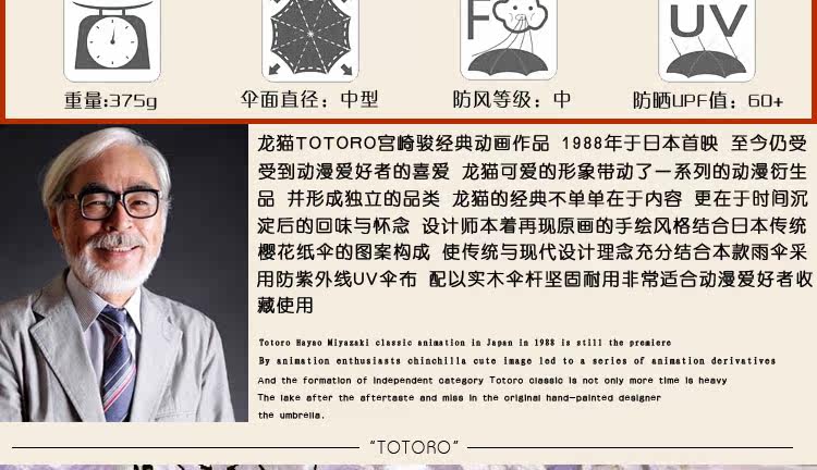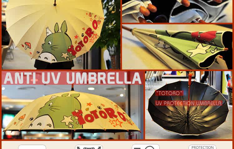 龙猫伞宫崎骏雨伞Totoro动漫周边女长柄16骨双层黑胶遮阳伞送伞套
