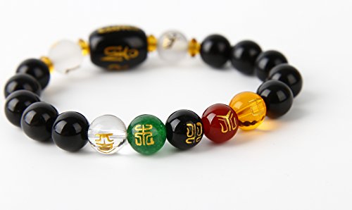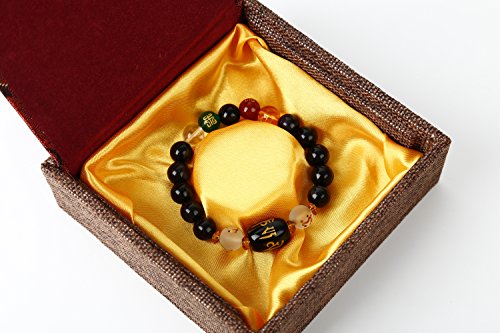 Feng Shui Obsidian Five-element Wealth Porsperity 10mm Bracelet , Attract Wealth and Good Luck, Deluxe Gift Box Included
