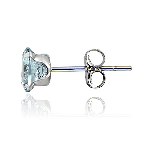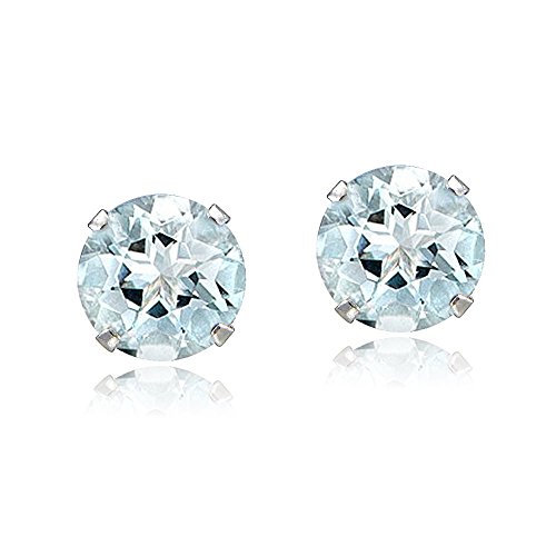 Luxury and Elegant 14K White Gold 1.00ct TGW Genuine Aquamarine Round Stud Earrings