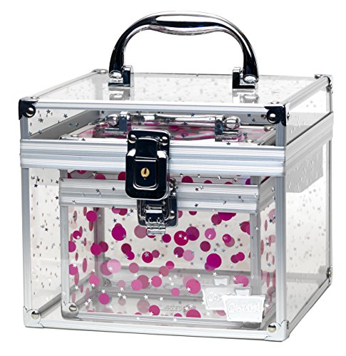 -. Feature : Clear acrylic storage / Removable storage tray with carrying handle / Locking latch with key / Bonus acrylic case included