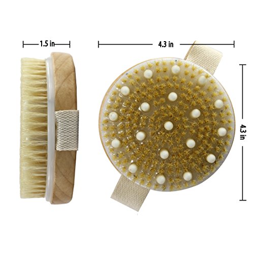 - GREAT RESULTS - Our brush has shown great results for the skin's health and beauty when dry brushing. It also works great as a bath brush, back scrubber and cellulite massager.