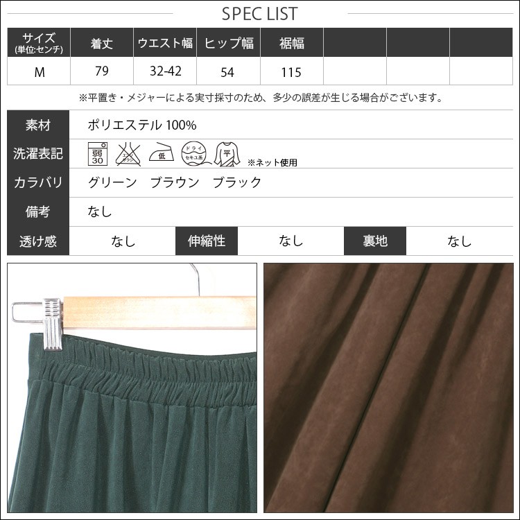 実寸:着丈 79cm ウエスト幅 32-42cm ヒップ幅 54cm 裾幅 115cm