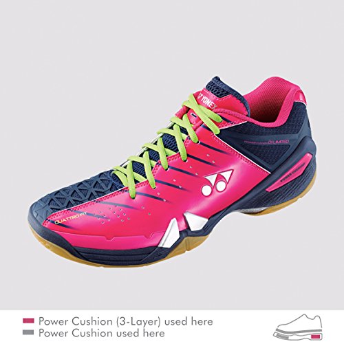 YONEX SHB-01 LTD LCW Lee Chong Wei Beim SHB-01 LTD LCW handelt es sich um ein limitiertes Sondermodell, das dem Weltklassespeiler Lee Chong Wei gewidmet ist. Der SHB-01 Ltd LCW zeichnet sich nich nur durch das äußerst gelungene Design, sondern auch durch die stark verbesserte Passform, die den Grip und den Powertransfer bei schnellen Bewegungen und harten Stops verbessert, aus. Durch den eng sitzenden, jedoch sehr angenehmen und bequemen Schnitt, bietet der Schuh einen außergwöhnlichen Halt und Komfort. Die Dämpfung entspricht ebenfalls dem gewohnt hohen Yonex Standard und wurde ebenfalls nochmasl verbessert. . Im Lieferumfang enthalten ist zusätzlich ein hochwertiger Schuhbeutel. Obermaterial: P.U. Leather, Polyester Mesh, Dura Skin Mittelsohle: ToughBrid Light, Power Cushion, T.P.U., Power Graphite Sheet Außensohle: Gummi Ausstattungsmerkmale: POWER CUSHION Ergoshape ToughBrid Hexagrip Sole Power Cushion - das YONEX Power Cushion Material absorbiert den Aufprallschock und wandelt die aufgefangene Energie unmittelbar in sanfte Bewegungsenergie um - das verhilft dem Badminton-Spieler zu leichterer und noch schnellerer Fußarbeit: verglichen mit Urethane, absorbiert das YONEX Power Cushion Material die 3-fache Aufprallenergie. Ergoshape - die besonders ergonomische Ausgestaltung des Vorderfuß- und Zehenbereiches sorgt für hohen Tragekomfort und perfekten Zehenschutz ToughBrid - ist ein Mittelsohlen-Material von YONEX, dessen Moleküle in einem stabileren Zustand angeordnet sind das sorgt für eine größere Elastizität und Formstabilität; die Dämpfungs-Performance des Schuhes wird deutlich optimiert, insbesondere unter hohen Dauerbelastungen und bei intensiver Fußarbeit - der Spieler verspürt dadurch eine reduzierte Fußmüdigkeit und einen maximalen Tragekomfort - die Leistungsfähigkeit der Füße wird insgesamt verbessert