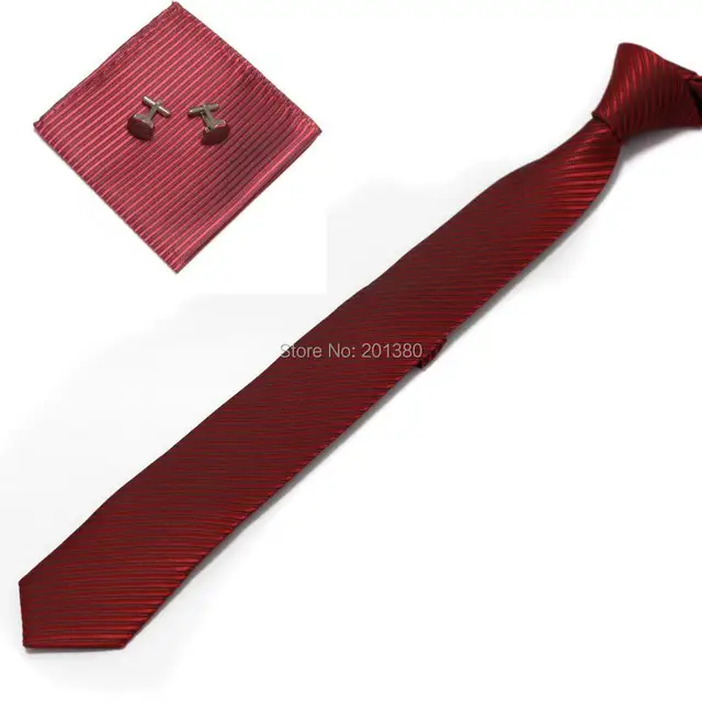 | [해외]솔리드 레드 슬림 목 넥타이 남자 손수건 손수건 커프스 |