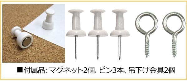 キズをつけたくない書類や簡易的に留めたい書類はマグネットで、しっかり留めたいときはピンで、二役をこなす便利なコルクボードです。どんなお部屋にも馴染むシンプルな形とデザインです。 |