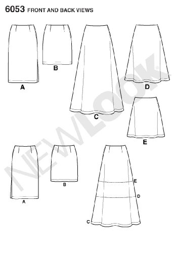 -. Feature : Misses' skirts in size a (8-10-12-14-16-18); new look pattern 6053 / Number of looks included: 5 / Designed in UK, manufactured in USA / Instructions are written in English, Spanish, and French