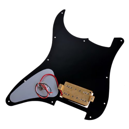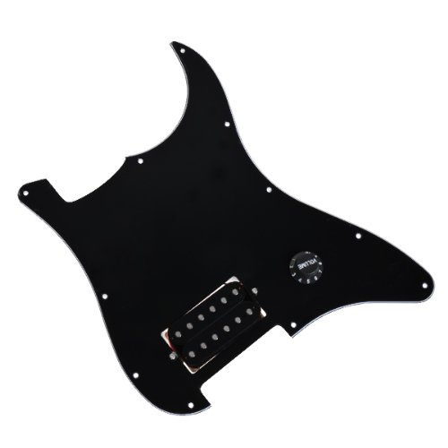 Studio : Kmise Publisher : Kmise Binding : Electronics Product Description 100% new high quality and testing is fine Item 100% like the picture shown Black Prewired Pick guard for Strats3-ply black/white/black 11 mounting holes One Hum bucker, Single Volume knob pot Pickup Output is a Hot 11. 6k All wired and ready. Solder wires to your input jack and bridge ground Package Included: 1pc Prewired Strat Pick guard 0