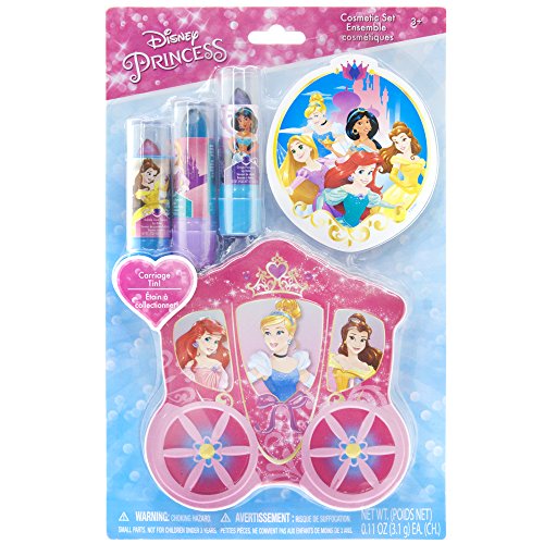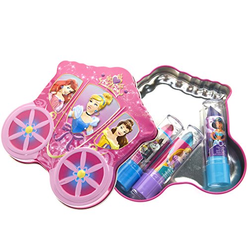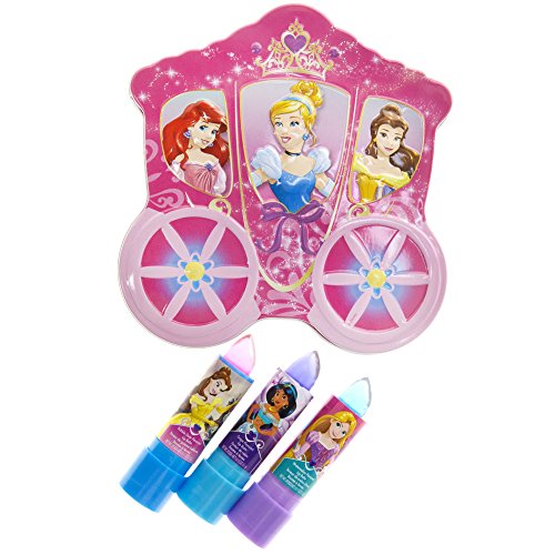 TownleyGirl Disney Princess Sparkly Lipstick for Girls, 3 Pack with Carriage Storing Case, 4 CT