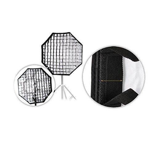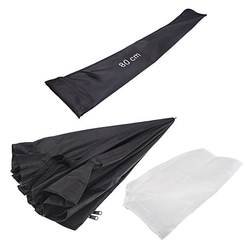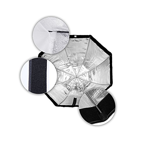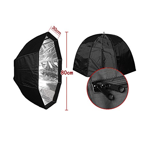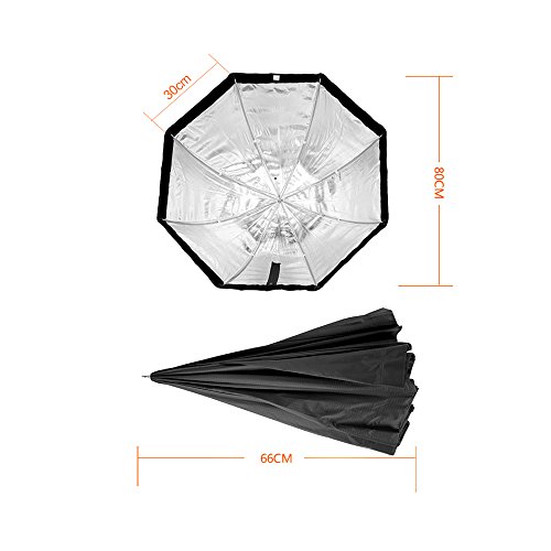 Der Offnungsdurchmesser ist 80 cm, innen mit Silber zu reflektieren und kommt mit Frontlassige Abdeckung, ideal fur Speedlite.