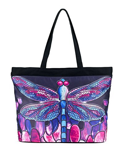 -. Brand : GALLERIA ENTERPRISES, INC. -. Color : Purple -. Department : womens -. EAN : 0877152000062 -. Feature : Distinctive Artwork on one side / Zip pocket, inside cell phone pocket, Top zip closure, black interior lining / Dimensions: W19.5" x L14.5" x D6" / Attractive gift item for any ocassion / Material is 80% Cotton, 20% Polyester -. Model : 70116D -. PackageQuantity : 1 -. ProductGroup : Apparel -. ProductTypeName : HANDBAG -. Size : One Size -. Title : Tiffany Dragonfly Tote Bag -. UPC : 877152000062